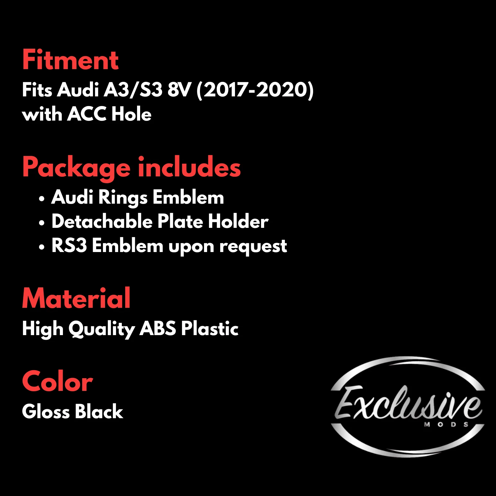 * DOES NOT FIT RS3 BUMPERS