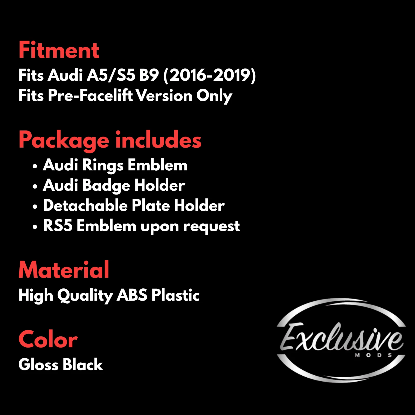* DOES NOT FIT RS5 BUMPERS