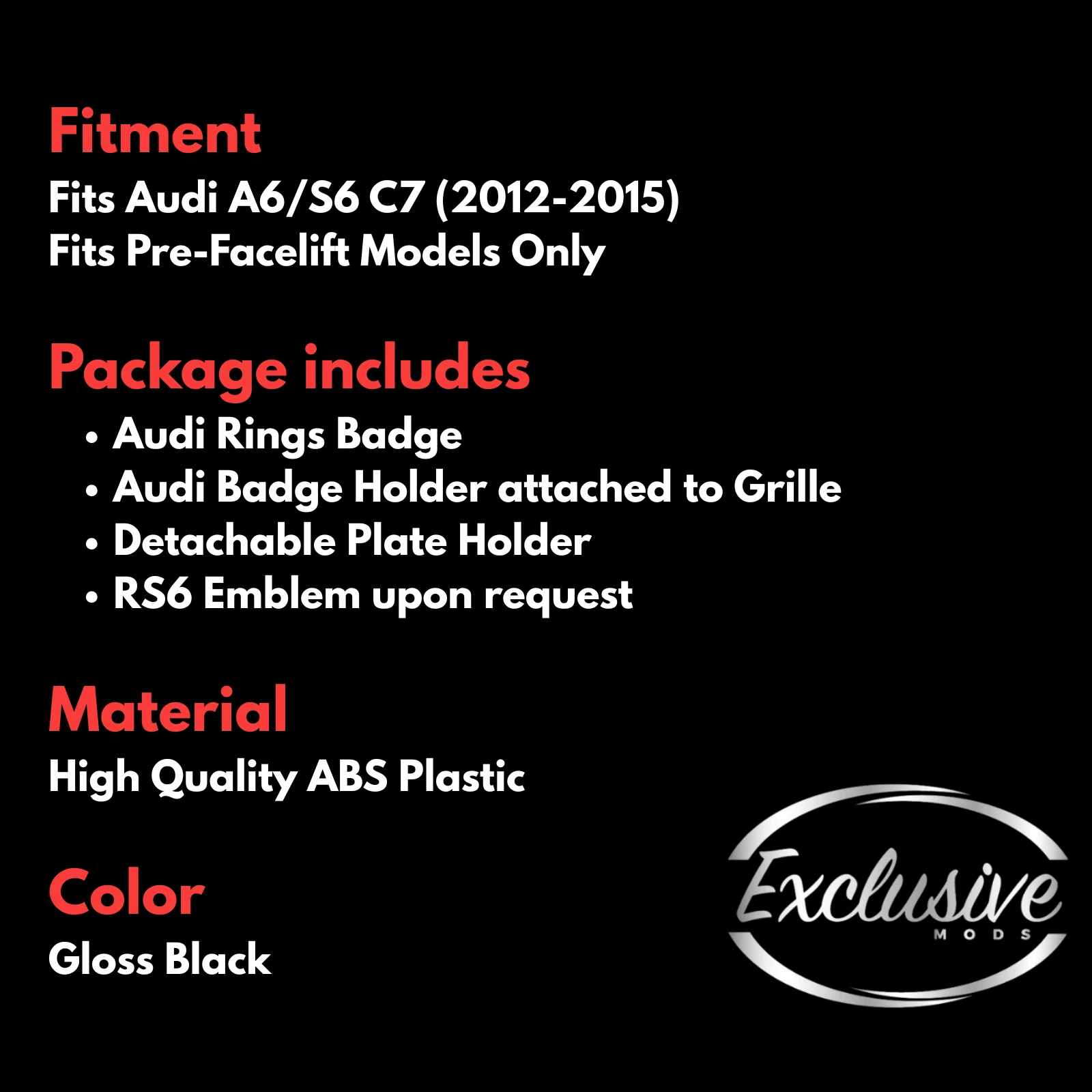 - DOES NOT FIT RS6 MODELS